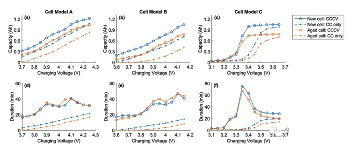 所謂的加速充電模式是在CCCV充電模式的基礎(chǔ)上增加了一個大電流的CC或者恒功率充電過程,從而達(dá)到降低充電時間的目的(如下圖e所示),有研究表明加速充電模式能夠有效的提升鋰電池的充電效率,同時又不會對鋰電池的循環(huán)壽命產(chǎn)生顯著的影響。